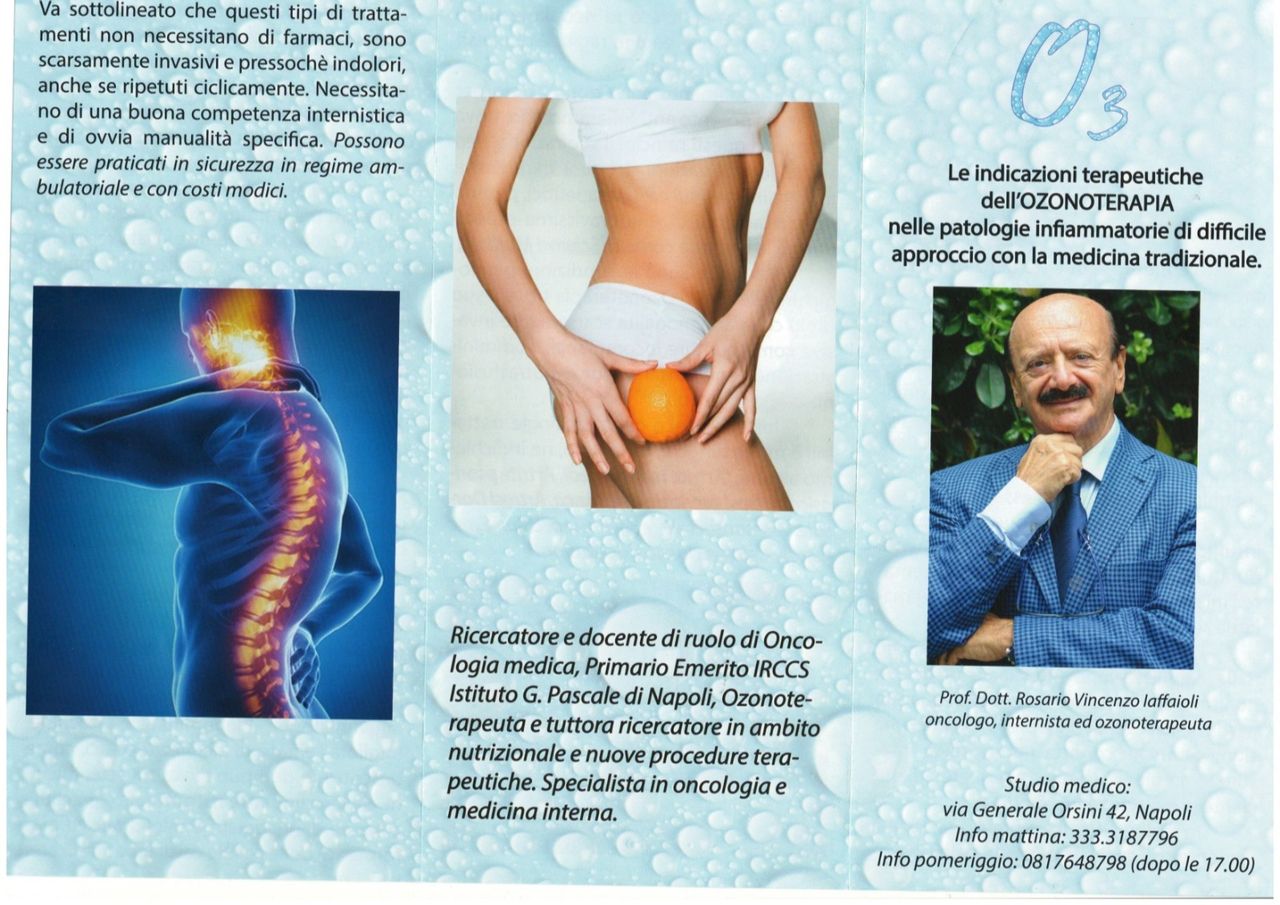 Il Prof. Iaffaioli si occupa di Ozono Terapia, prima per la parte sperimentale, per la quale pubblica 3 lavori scientifici internazionali e successivamente per la parte clinica tirocinata a Torino presso lo studio del Prof. Vincenzo Simonetti noto caposcuola e docente internazionale di Ozono terapia.